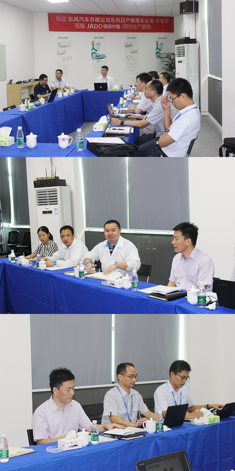 初步審核后,9月8日,東風汽車有限公司、東風日產(chǎn)乘用車公司研發(fā)部門、采購部門、發(fā)貨部門和品質部門組成的考察團一行蒞臨JADO捷渡中國深圳生產(chǎn)基地進行全面實地考察。