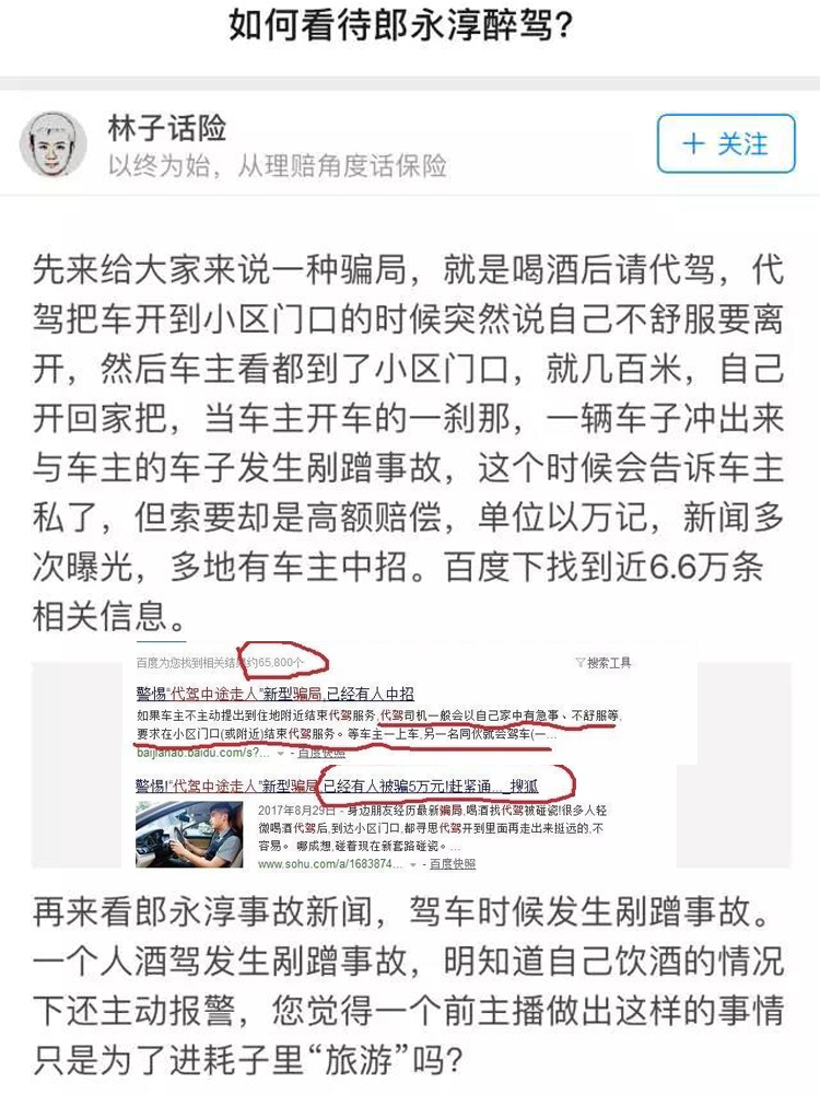 在各大媒體對(duì)這個(gè)昔日同行進(jìn)行“口誅筆伐”的時(shí)候,10月28日,劇情發(fā)生反轉(zhuǎn)。據(jù)認(rèn)證為財(cái)經(jīng)及心理學(xué)專欄作者的陳宗鶴先生爆料稱:郎永淳被代駕騙局套路了!