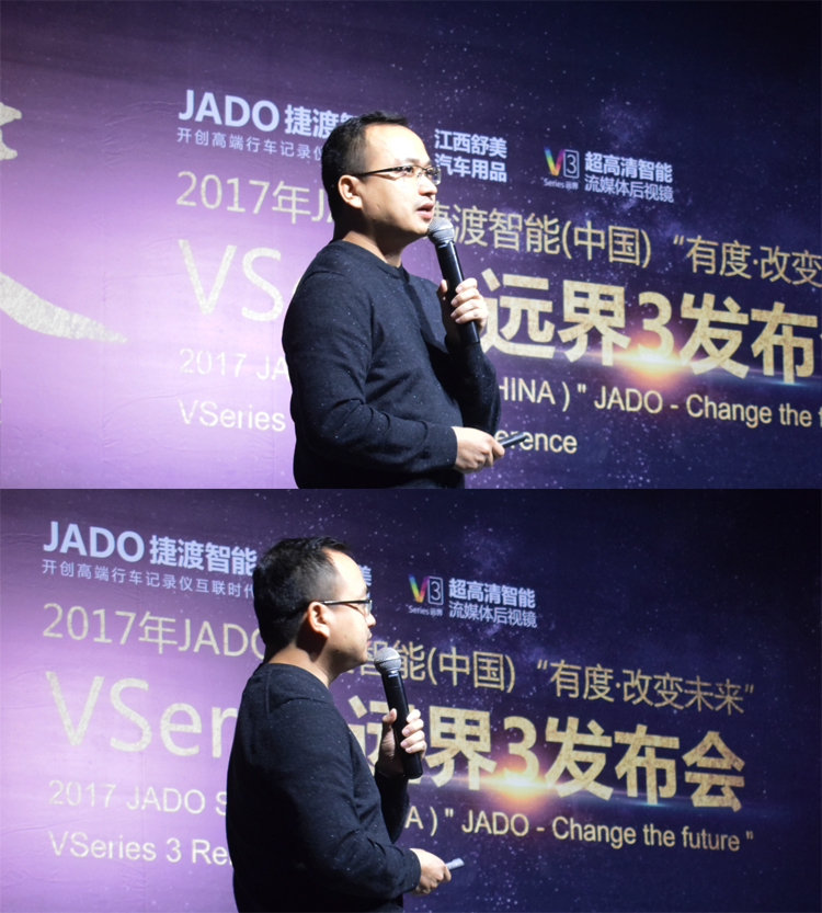 JADO捷渡智能(中國(guó))產(chǎn)品總監(jiān)吳樂明先生上臺(tái)致辭,重點(diǎn)為大家闡述了 VSeries遠(yuǎn)界系列產(chǎn)品的設(shè)計(jì)理念。面對(duì)行業(yè)的白熱化競(jìng)爭(zhēng),如何從產(chǎn)品端去精準(zhǔn)把握市場(chǎng),進(jìn)而引領(lǐng)后視鏡未來(lái)的廣闊市場(chǎng)。前裝與后裝并存、專業(yè)與智能的完美融合,VSeries遠(yuǎn)界3給了大家一個(gè)最佳的選擇。