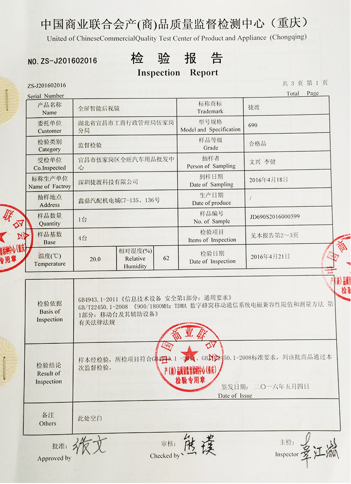 針對夏季來臨,很多機器容易出現(xiàn)死機、不正常工作,以及近期網(wǎng)上購物出現(xiàn)質(zhì)量投訴問題,當?shù)毓ど滩块T聯(lián)合質(zhì)檢單位進行抽檢。經(jīng)過近兩周的樣本檢測,JADO捷渡中國,實力應(yīng)對考驗,成為同批參檢品牌中唯一通過質(zhì)量檢測的行車記錄儀品牌。